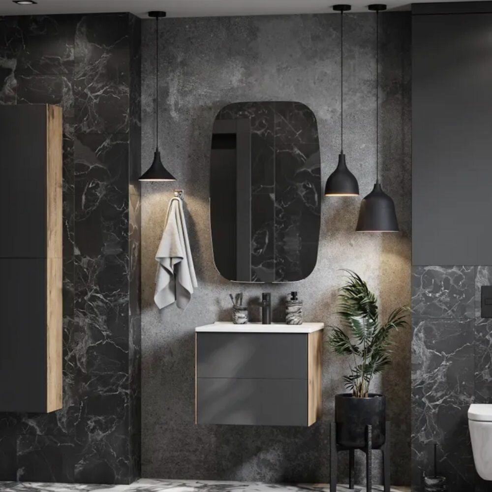 Тумба под раковину в ванную AQUATON 1A247601LQX60 Лофт Урбан 80 серый графит, дуб орегон