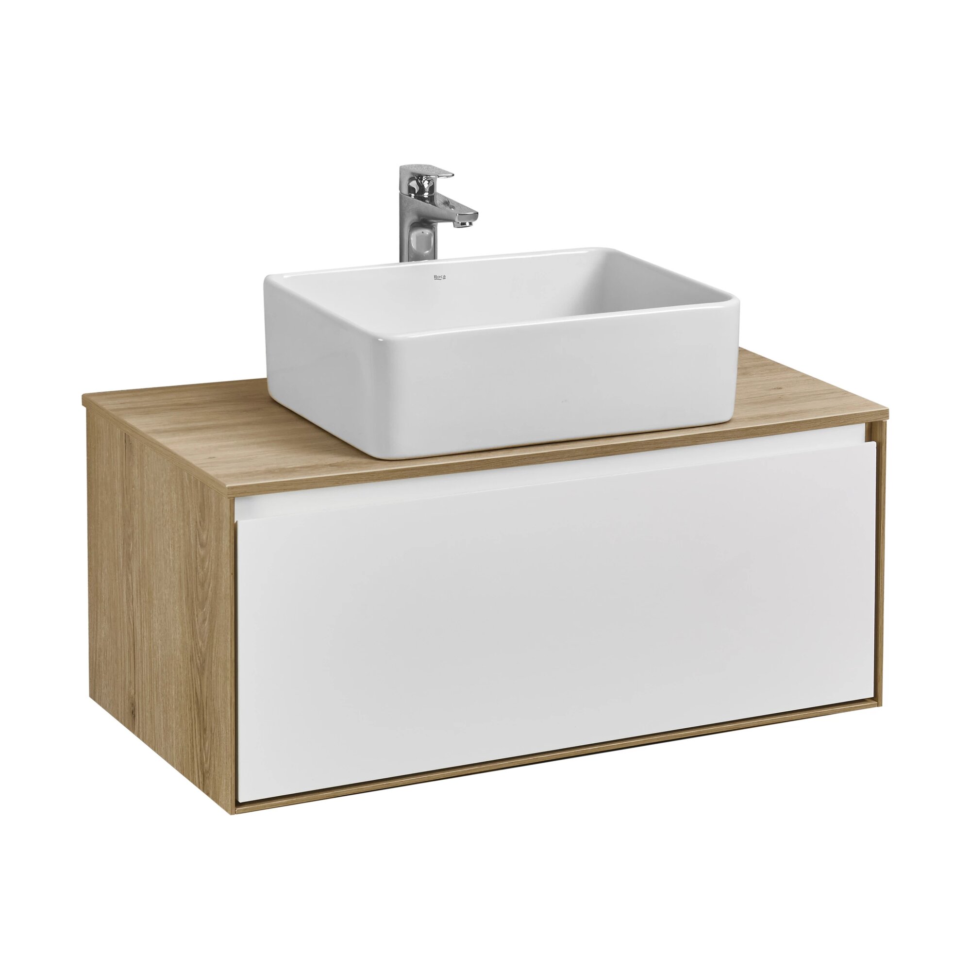 Тумба с раковиной для ванной подвесная с выдвижным ящиком AQUATON 1A2067K1VDAV0 Верди 60 белый/ясень фабрик, раковина Нео 60