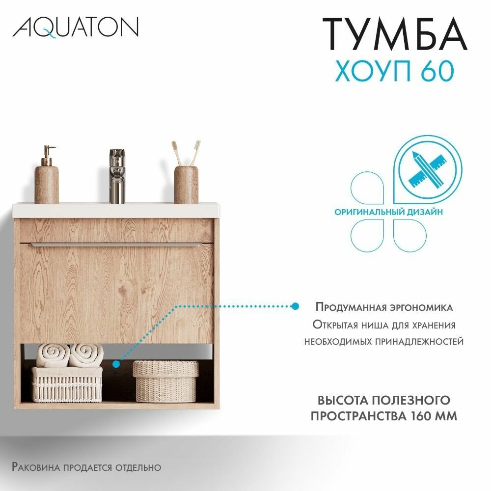 СохранитьТумба под раковину в ванную AQUATON 1A287201HP6C0 Хоуп 60, 1 ящик, орех интересное: