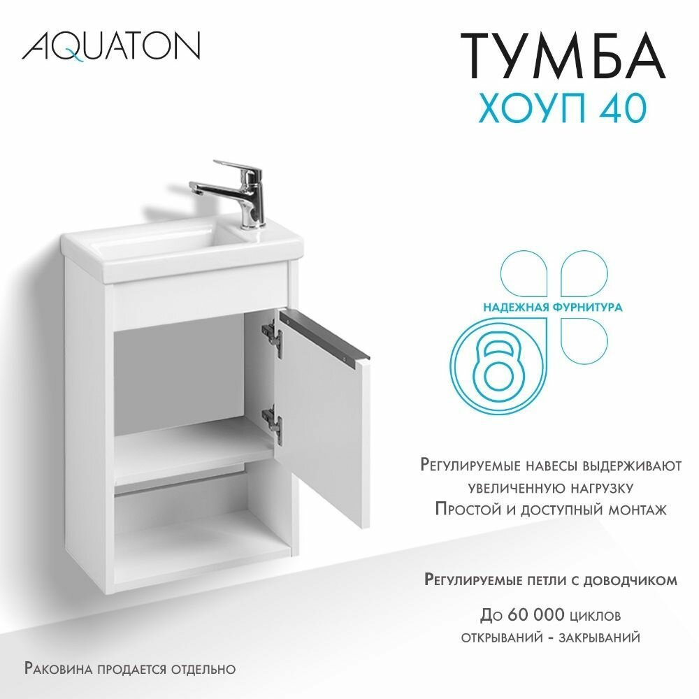 Купить Тумба под раковину в ванную 1A287101HP2B0 AQUATON Хоуп 40, 1 створка, белый матовый