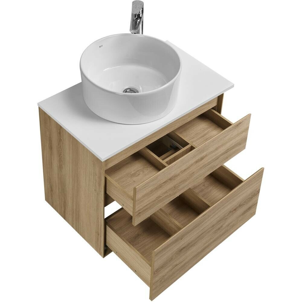 Тумба с раковиной для ванной подвесная с выдвижным ящиком AQUATON 1A2067K1VDAV0 Верди 60 белый/ясень фабрик, раковина Нео 60