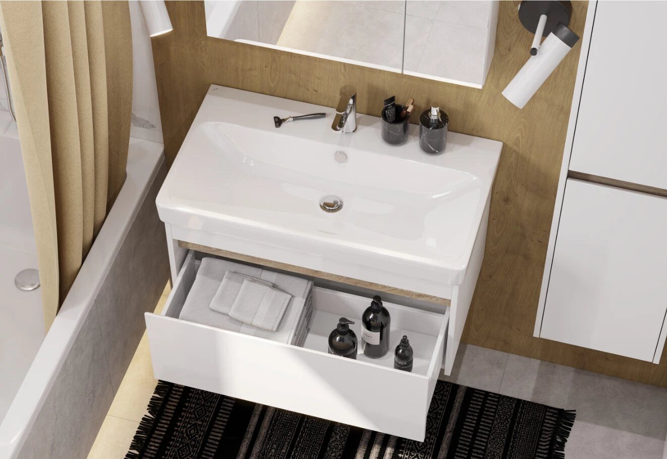 Тумба под раковину AQUATON Сканди 90 белый глянец, белый матовый