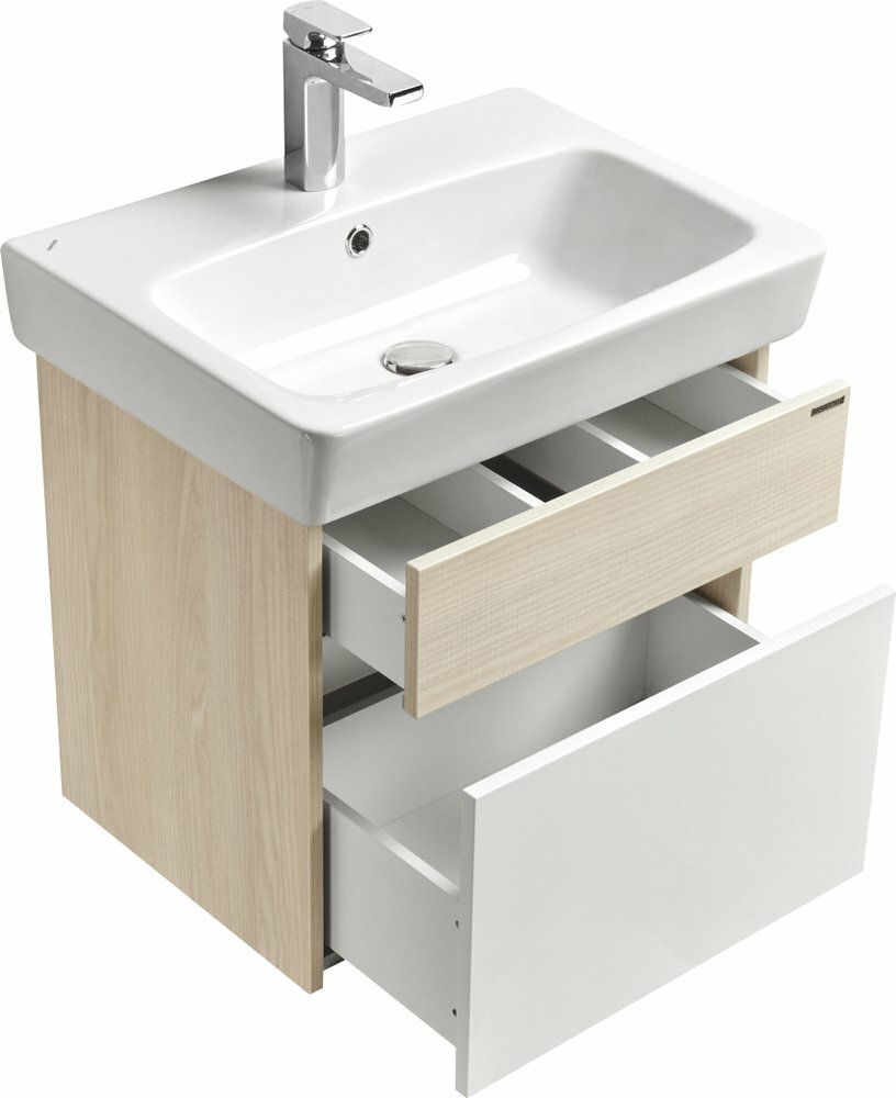 Модуль под раковину Акватон Верди 54х39,5х51,5см, арт. 1A206701VDAV0, 2 ящика, белый глянцевый / ясень фабрик