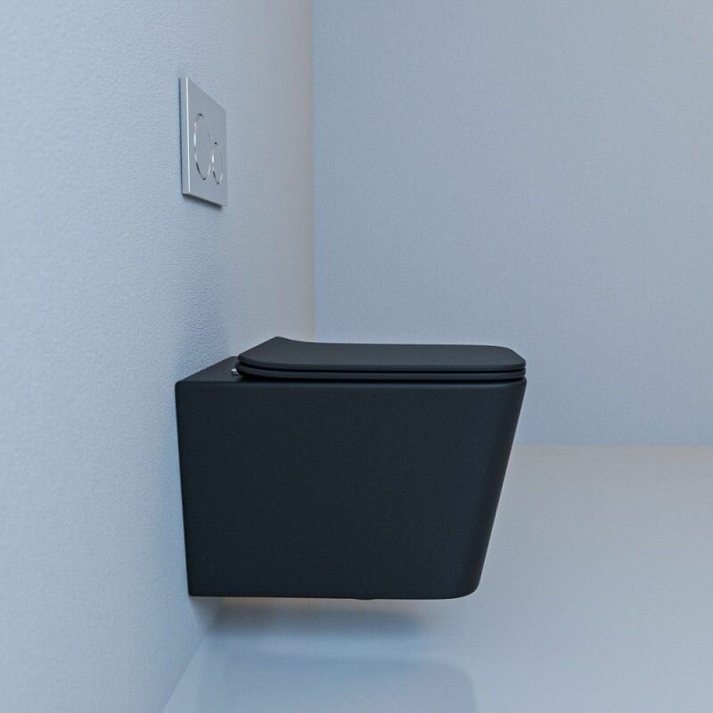 Унитаз Esbano "Azalea", подвесной, безободковая система слива, черный, матовый