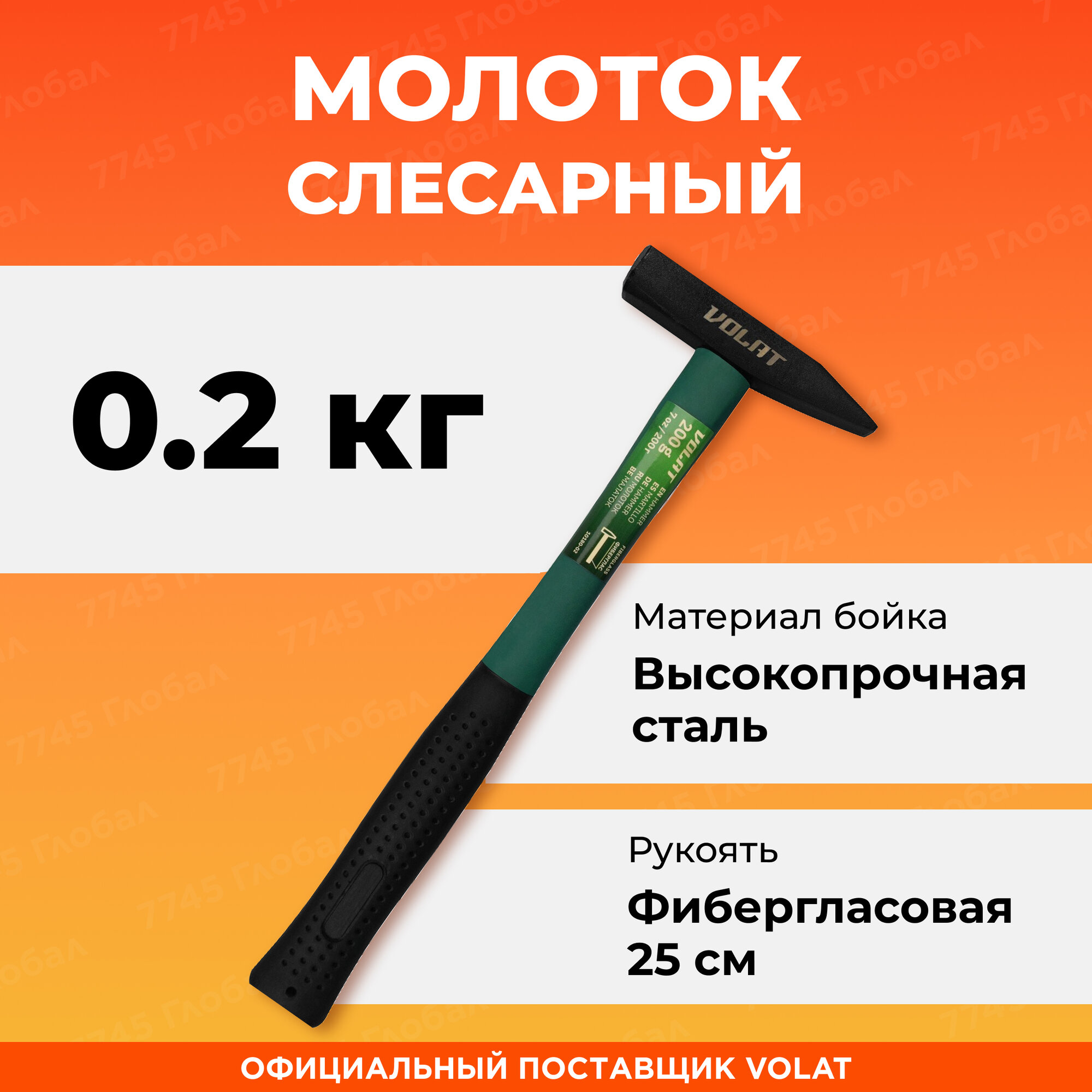 Молоток слесарный с фибергалассовой рукояткой 0,2 кг волат (10180-02)