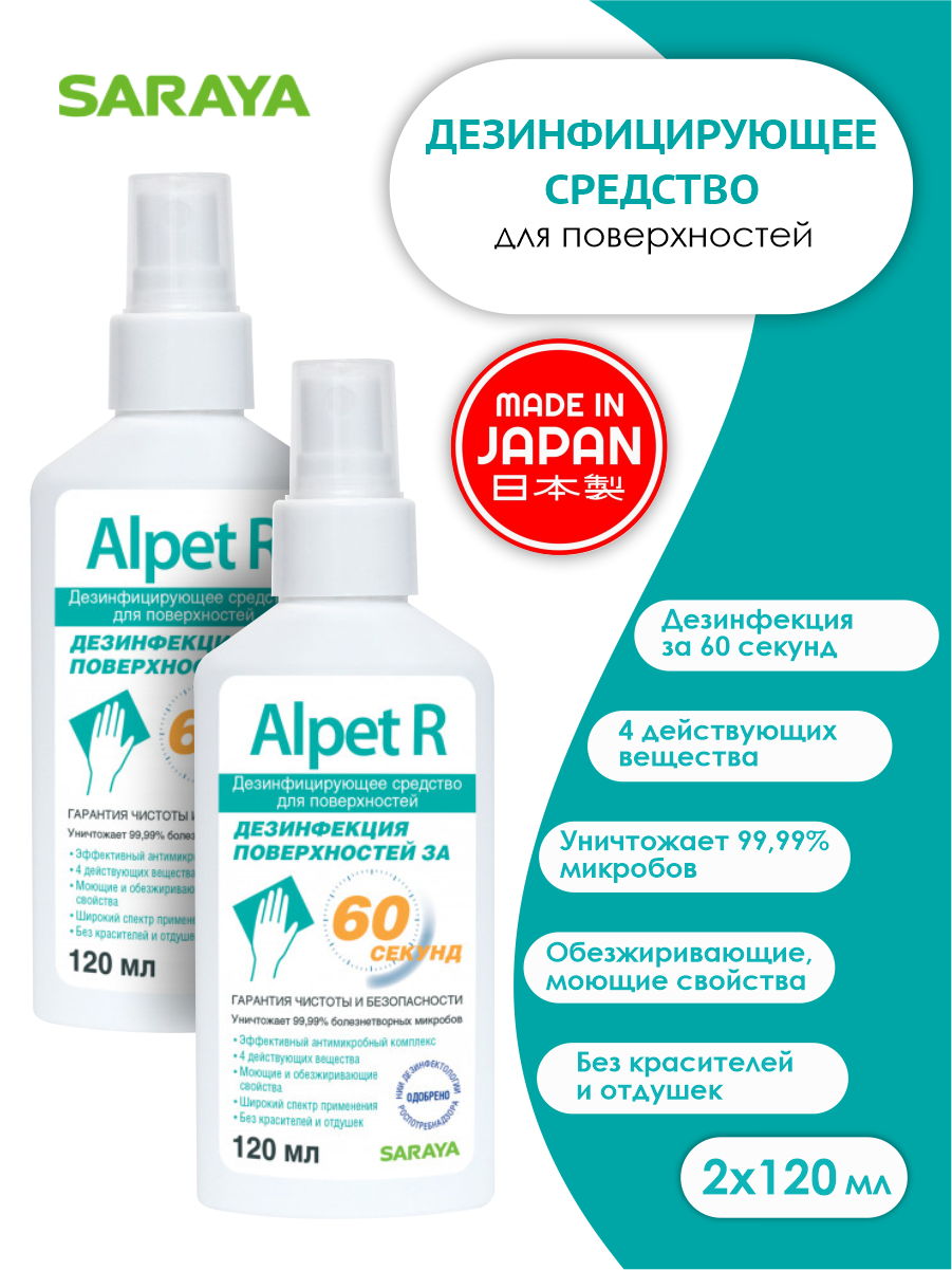Saraya Alpet R Дезинфицирующее средство для поверхностей антисептик, 120 мл 1 шт
