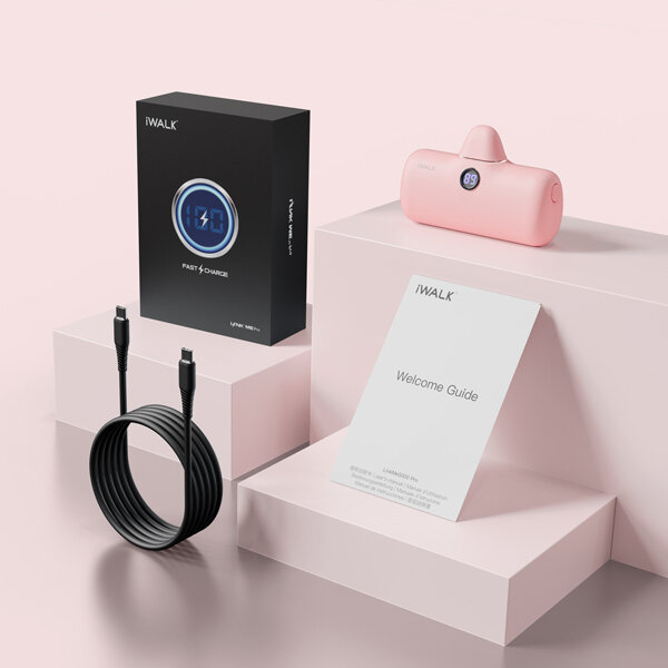 Портативный внешний аккумулятор Power Bank Type-C для Android и iPhone 15 iWALK 4800 mAh mini, повербанк, пауэрбанк, павербанк, повер банк, power bank, розовый