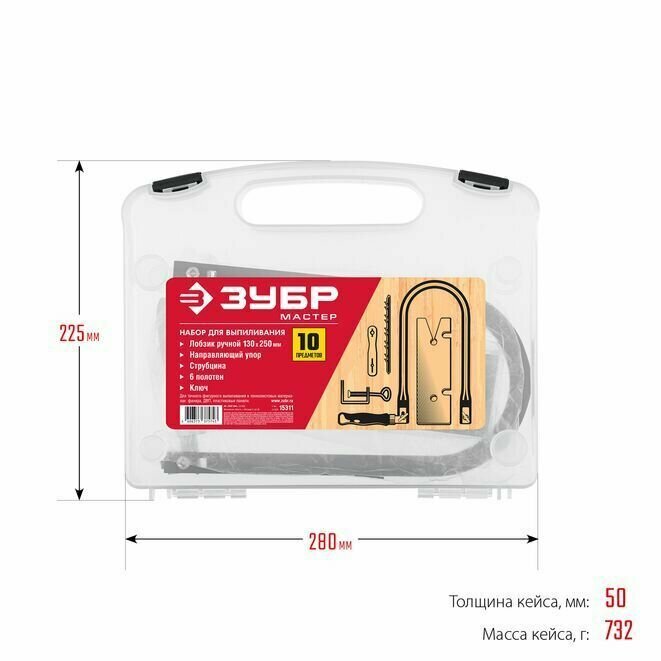СохранитьНабор для выпиливания ЗУБР 130х250 мм, 10 предметов, Мастер интересное: