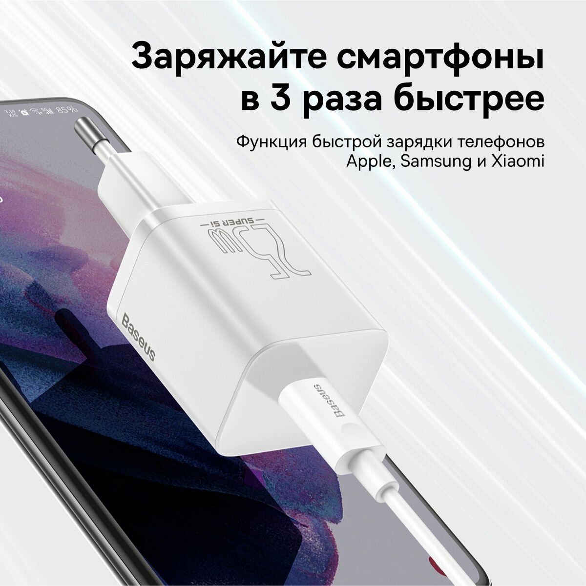 Сетевое зарядное устройство Baseus Super Si Quick Charger CCSP020102, белый zal
