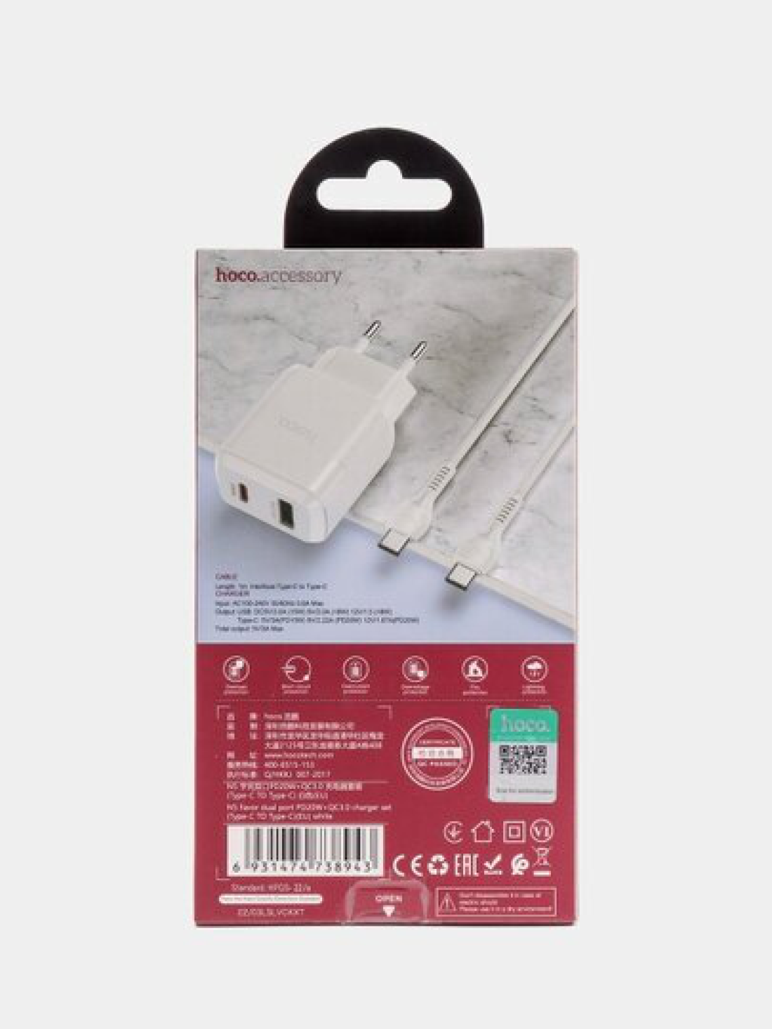 СохранитьСетевое зарядное устройство, 1 USB 3.0 QC+1 PD 20W (N5), HOCO, Type-C to Type-C, белый интересное:
