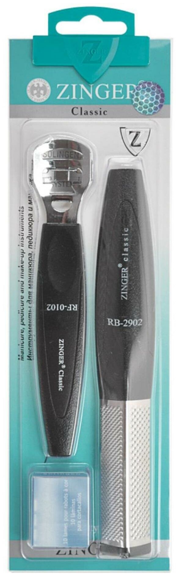 Педикюрный набор Zinger Терка с бритвой, 10 лезвий, шлифовка для ног, ZO Sis-32-2