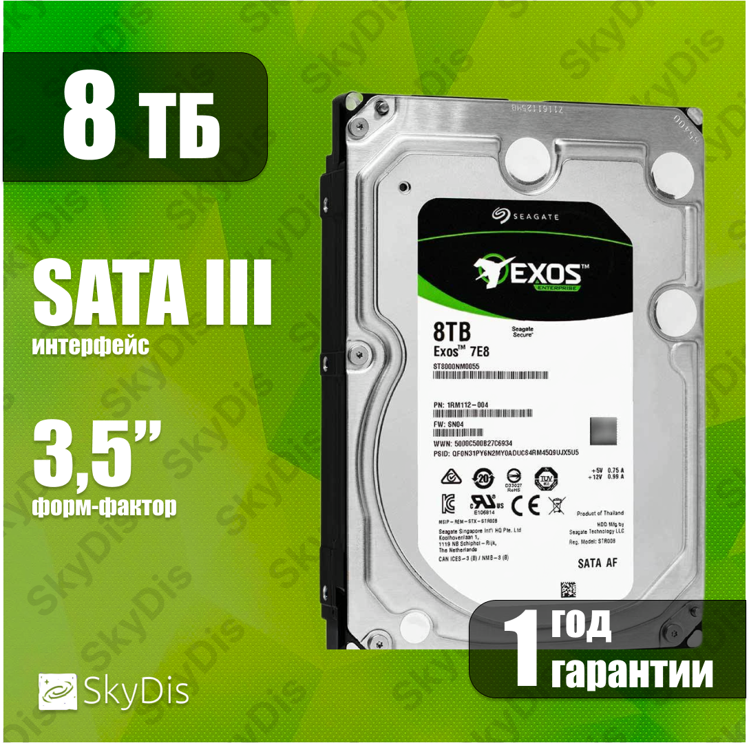 Жесткий диск Seagate 8Tb Exos 7E8 7.2К 3.5" SATA III (SATA3 - 6Gb/s) ST8000NM0055