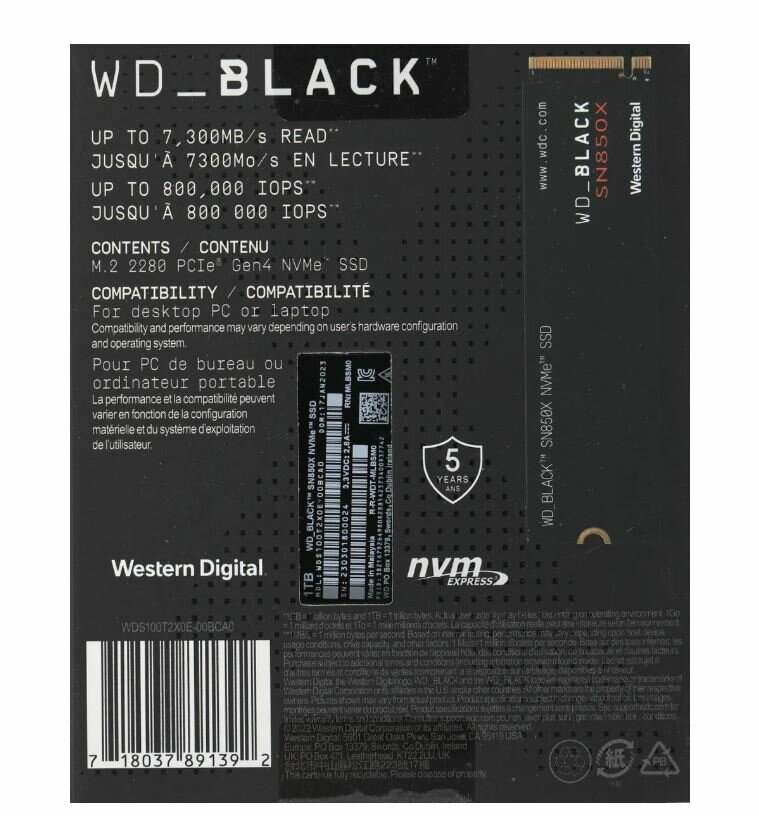 Ниже Вы можете прочитать отзывы на Накопитель SSD M.2 WESTERN DIGITAL BLACK SN850X 1TB PCIe 4.0 x4 3D NAND TLC (WDS100T2X0E), ознакомится с подробными характеристиками, посмотреть интересные обзоры и фотографии на Накопитель SSD M.2 WESTERN DIGITAL BLACK SN850X 1TB PCIe 4.0 x4 3D NAND TLC (WDS100T2X0E).