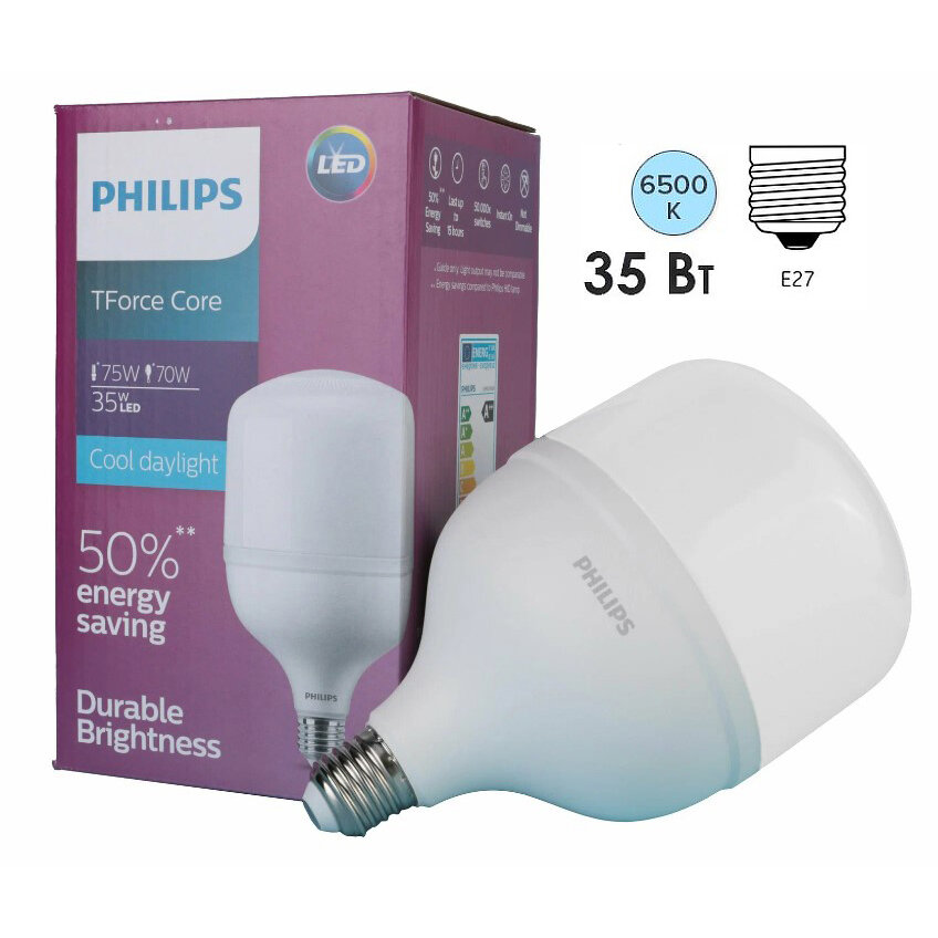 1шт/уп. Лампа LED Бочонок 35Вт 230V E27 5000Лм D-118mm L-193mm Промышленная лампа высокой мощности. Лампа для наружного применения. Не использовать в закрытых светильниках6500К Свет Холодный белый Philips, уп. 1шт интересное: