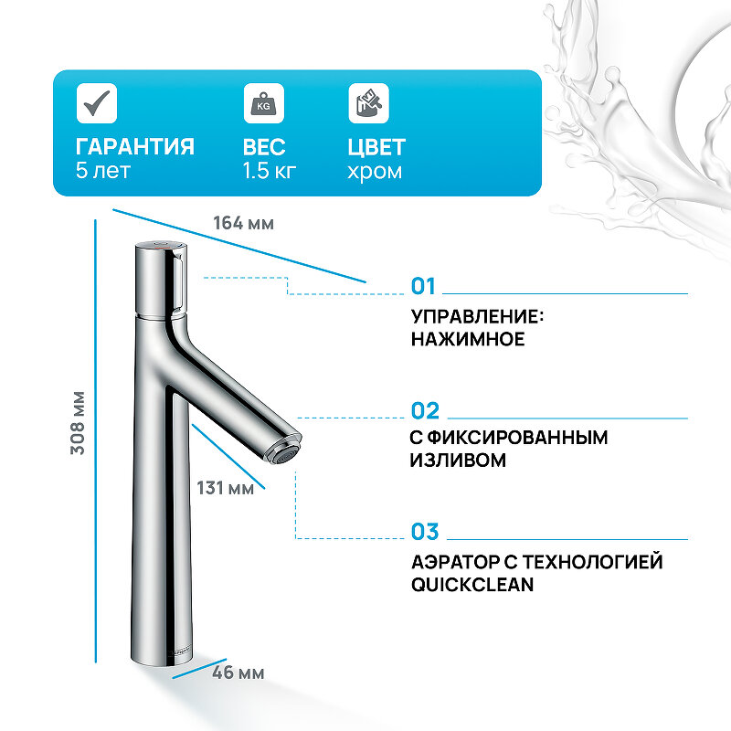 | Длина излива | 131 мм |