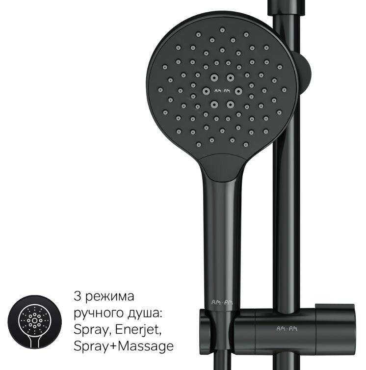СохранитьДушевая система AM.PM Like F0780422 смеситель для душа термостатный, верхний/ручной душ, черный интересное: