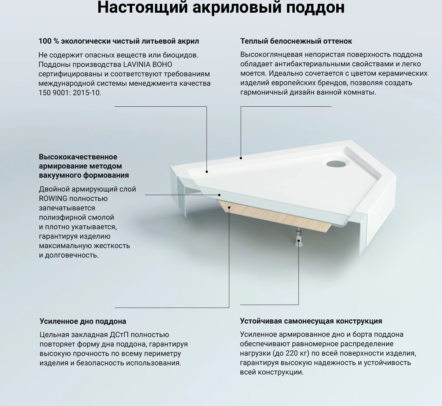 Душевой поддон Lavinia Boho Art 3708190S в наборе 2 в 1: акриловый поддон для душа 90х90 см, пятиугольный, цвет белый