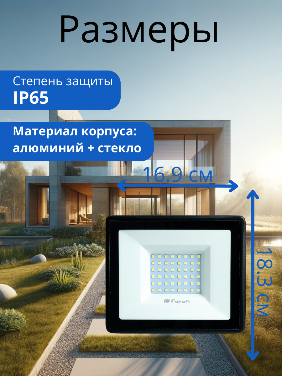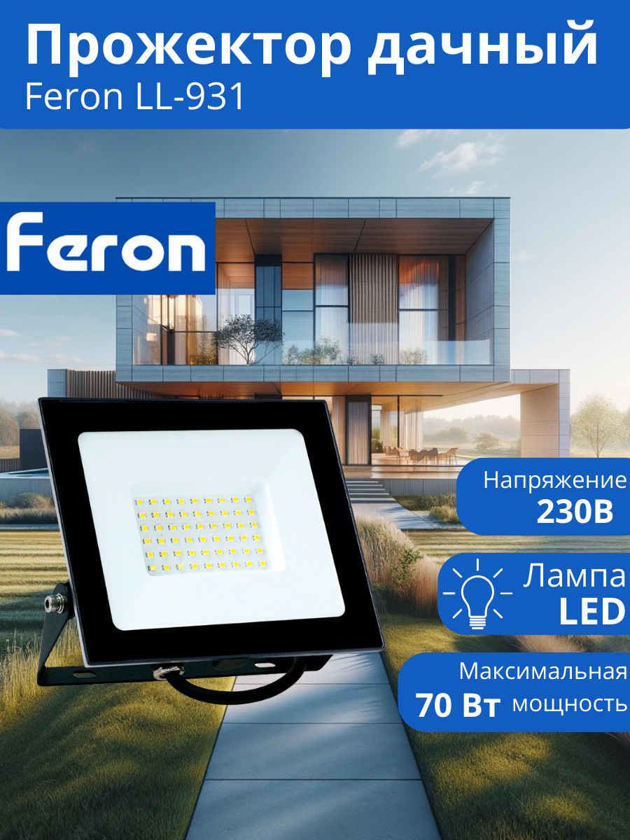 Feron Прожектор светодиодный 2835 SMD 70W 6400K IP65 AC220V/50Hz, черный, LL-931 41551
