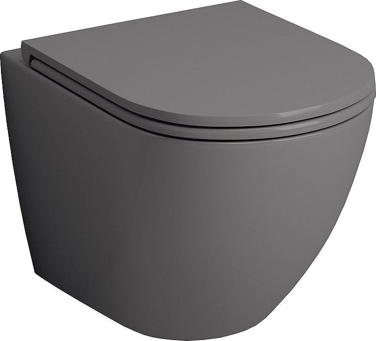 Унитаз GR-4455GMS (490*370*360) серый матовый подвесной безободковый с тонкой крышкой