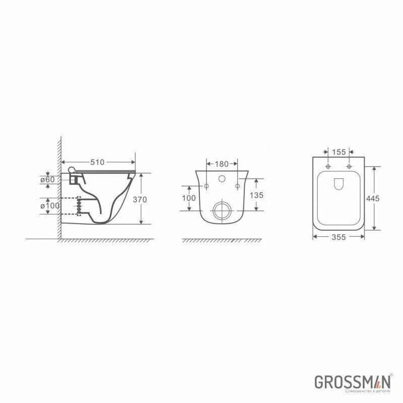 Grossman Унитаз подвесной GROSSMAN GR-4413S (510x355x370) с тонкой крышкой