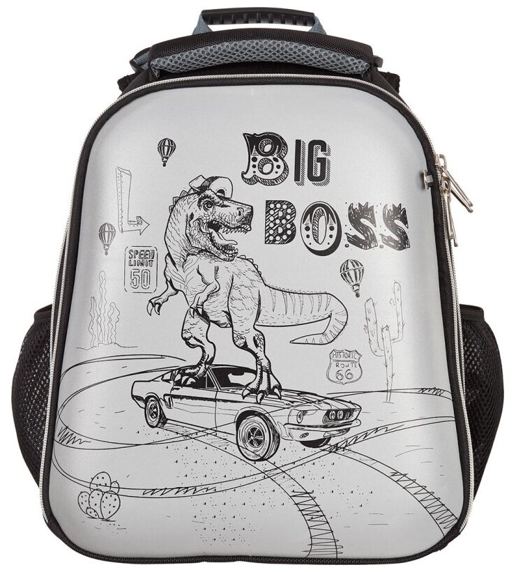 Ранец Комус Класс (№1 School) Динозавр Boss 2 отделения серый