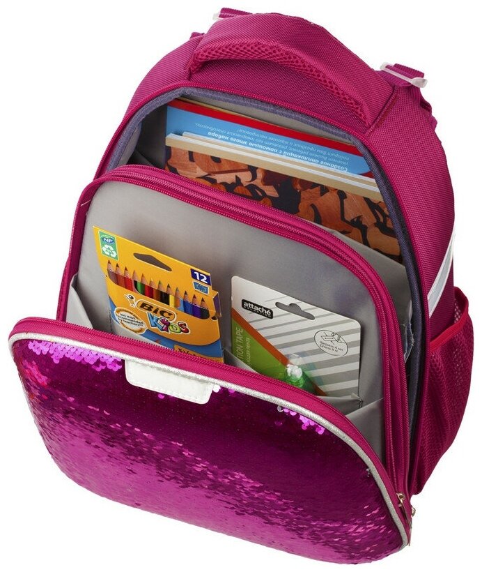Ранец Basic Sparkle Pink,эргоном. спинка, двустор.пайетки фуксия/серебро, 879313