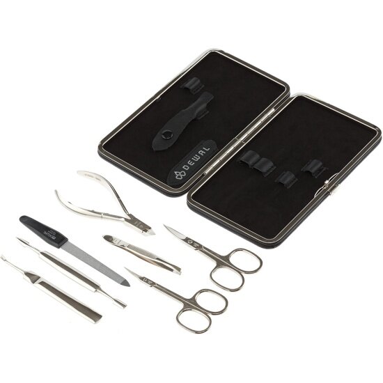 Dewal 905BLACK Маникюрный набор dewal, 7пр. футляр: натуральная кожа, цвет черный