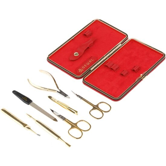 Маникюрный набор DEWAL, 7пр. Футляр: натуральная кожа, цвет красный