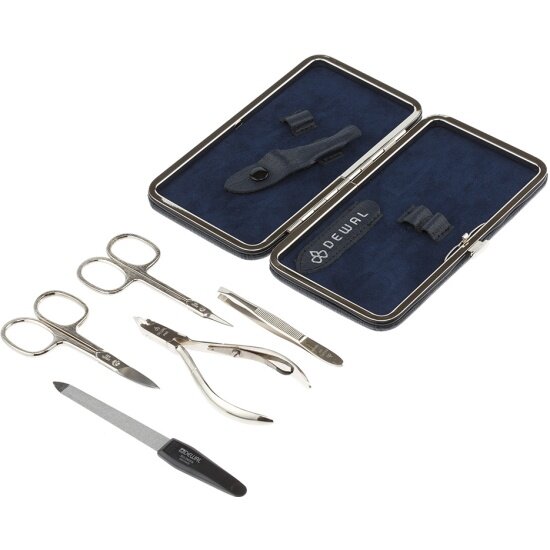 Маникюрный набор DEWAL, 5пр. Футляр: натуральная кожа, цвет синий