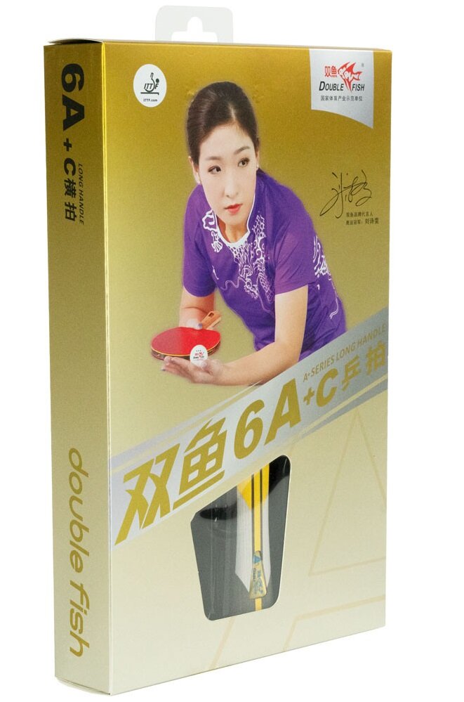 Купить Ракетка для настольного тенниса Double Fish , 6A+C, для подвин, ITTF Appr, накл. 2,1 мм, конич. ручка+ 2 мяча V40+мм