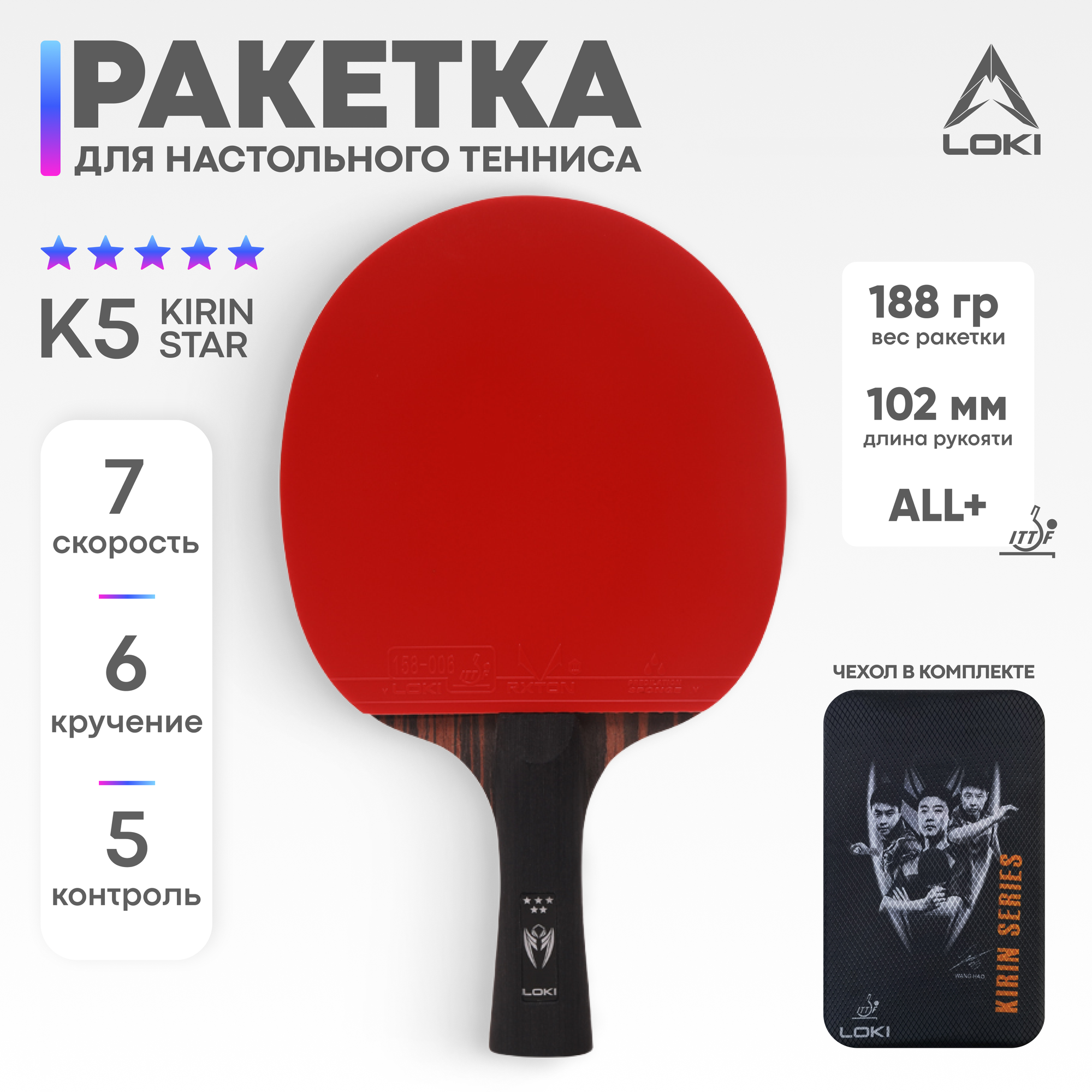 Купить Ракетка для настольного тенниса LOKI K5, с чехлом