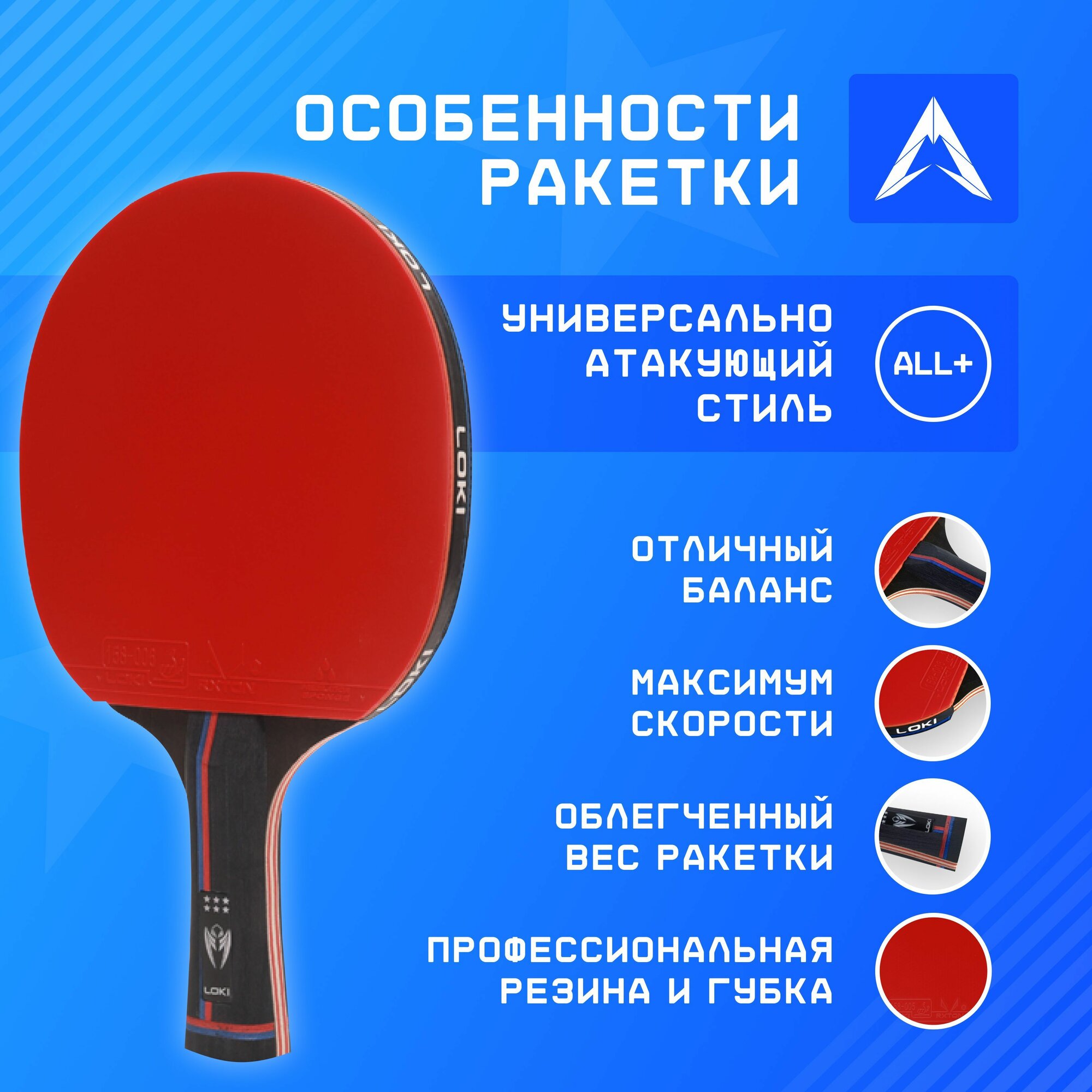 Ракетка для настольного тенниса с чехлом LOKI R4, ALL