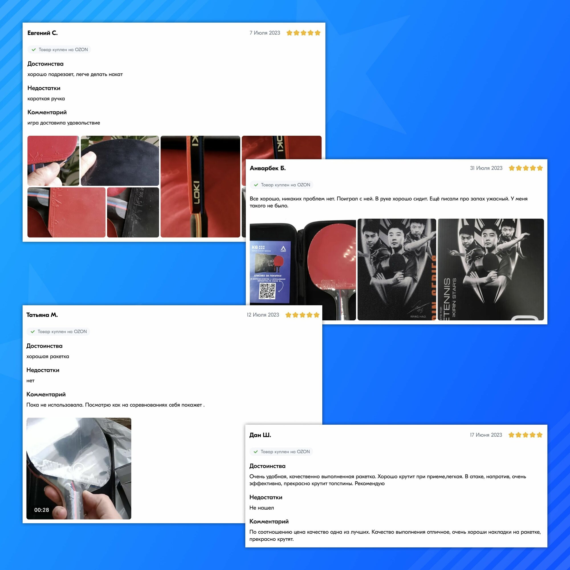 Ниже Вы можете прочитать отзывы на Ракетка для настольного тенниса с чехлом профессиональная LOKI K6 Kirin Star 6 звезд, ознакомится с подробными характеристиками, посмотреть интересные обзоры и фотографии на Ракетка для настольного тенниса с чехлом профессиональная LOKI K6 Kirin Star 6 звезд.