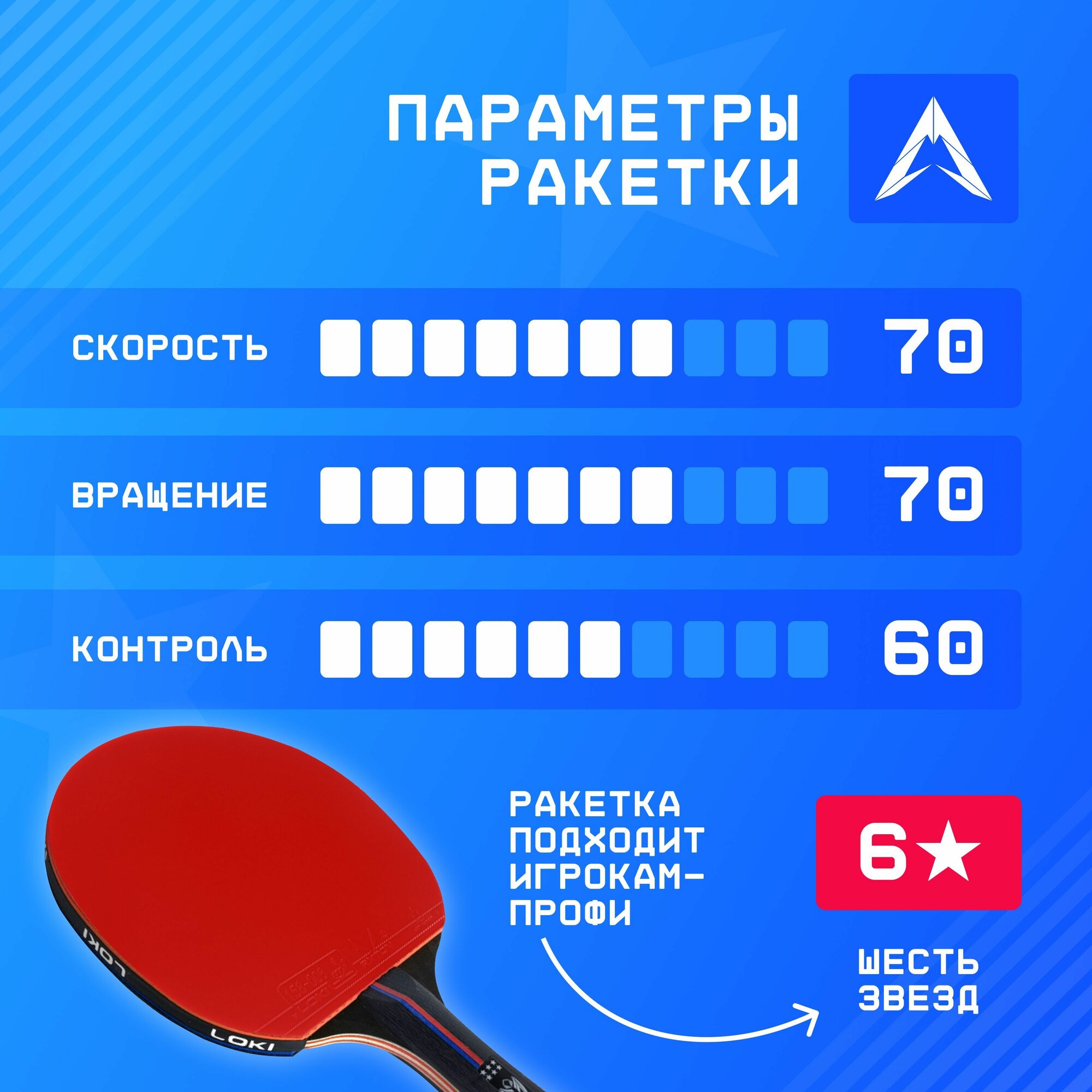 Ракетка для настольного тенниса LOKI E6 Arthur Star, 6 звезд, FL, OFF