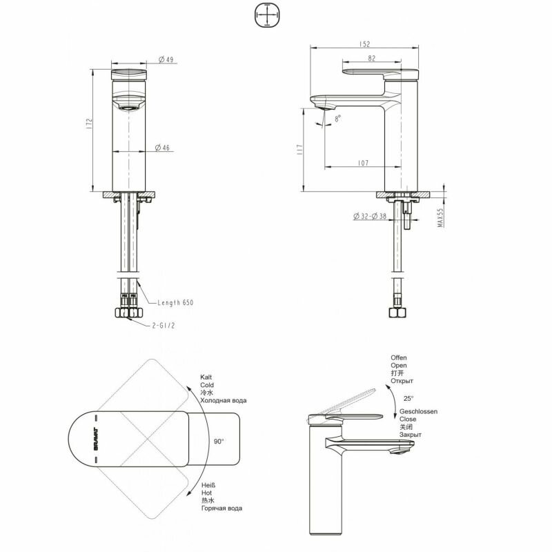 | Длина излива | 107 мм |