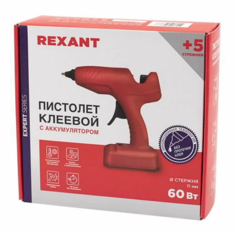 Пистолет клеевой REXANT, 60 Вт, Ø11 мм, «эксперт», аккумуляторный, коробка