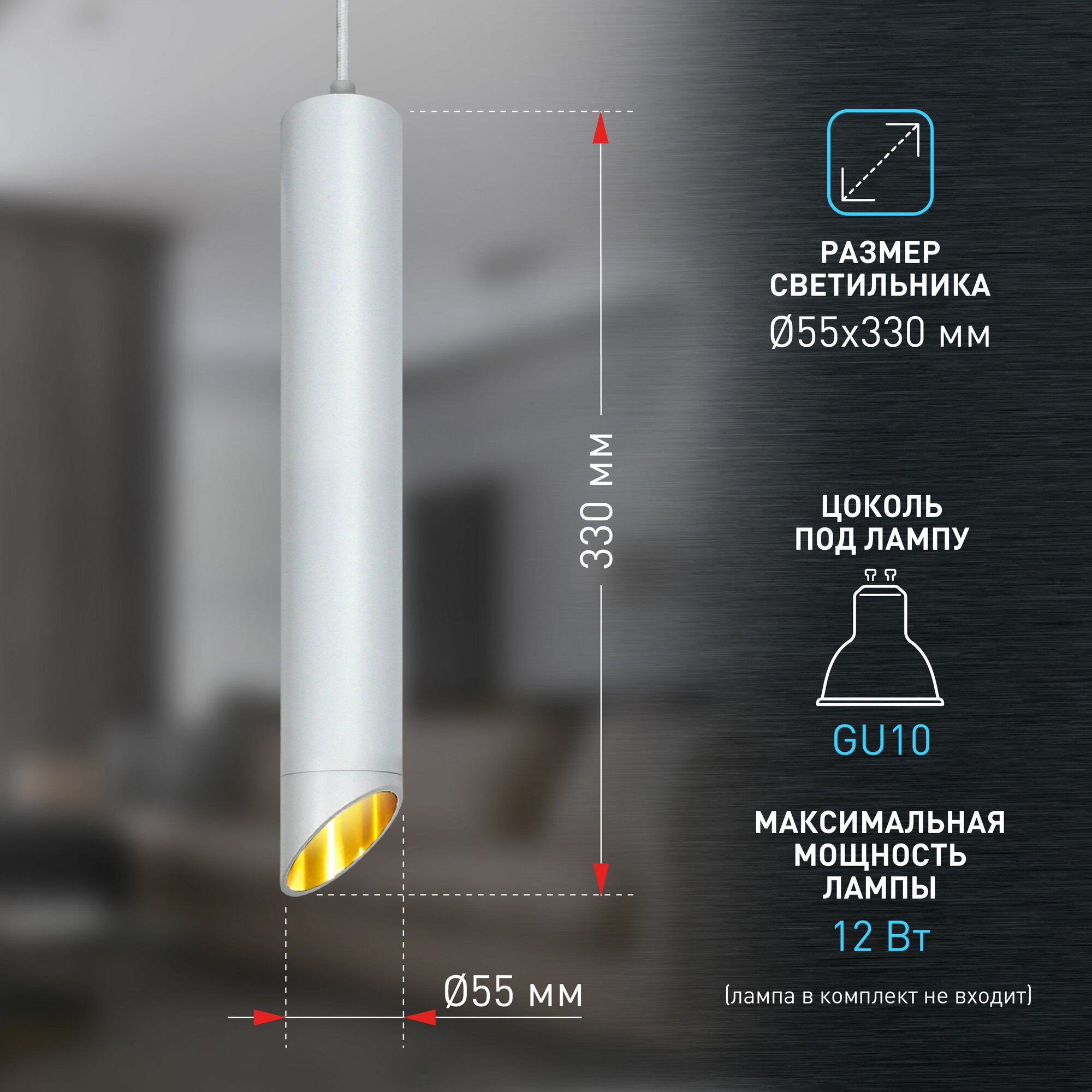 Светильник потолочный подвесной ЭРА PL1 GU10 WH, модерн, металл, GU10, max 50W, D80*300мм, белая