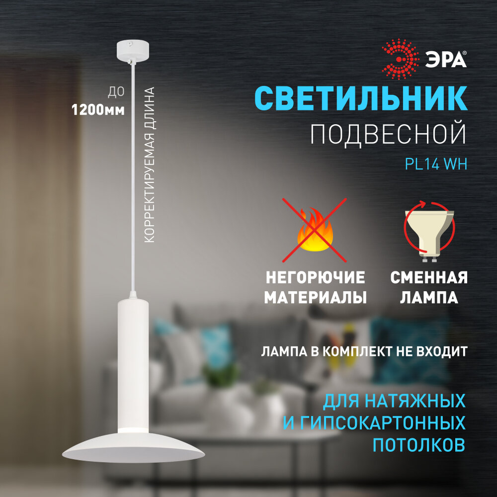 Светильник потолочный подвесной ЭРА PL17 WH, металл, GU10, белая