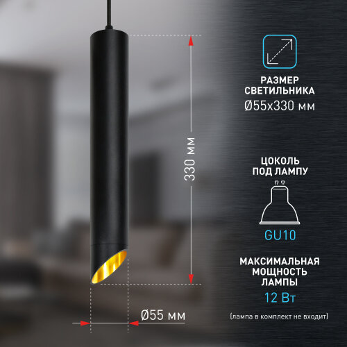 СохранитьСветильник подвесной (подвес) РL 17 BK MR16/GU10, черный, потолочный, цилиндр интересное: