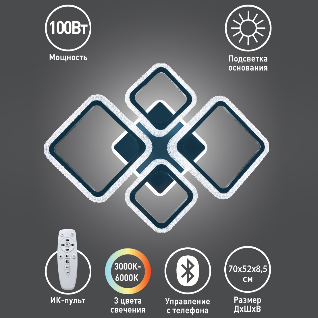 Светильник потолочный Camelion LCL-1005, LED, 100W, IP20, люстра светодиодная