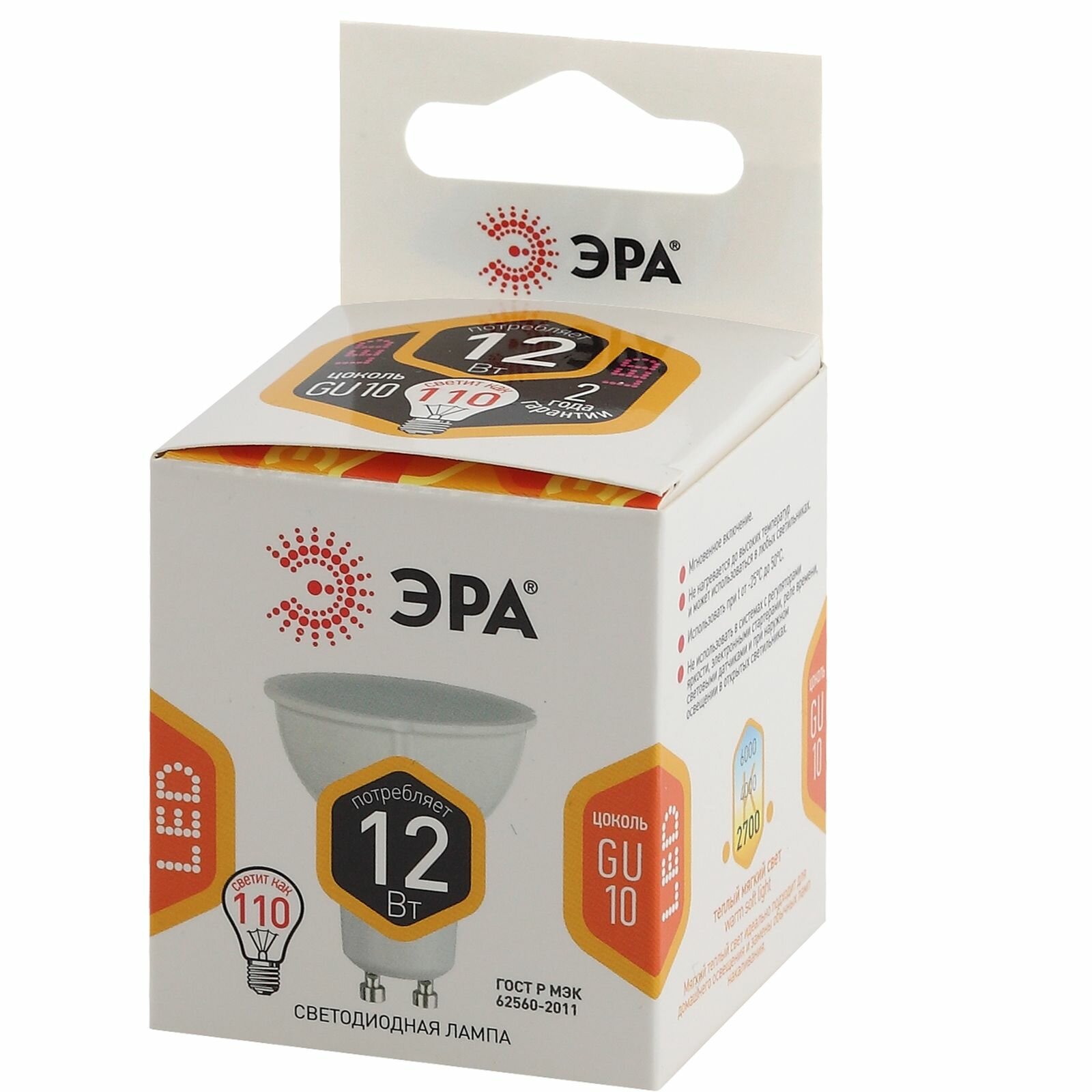 Купить Лампочка светодиодная ЭРА (набор 10 штук) STD LED MR16-12W-827-GU10 GU10 12ВТ софит теплый белый свет