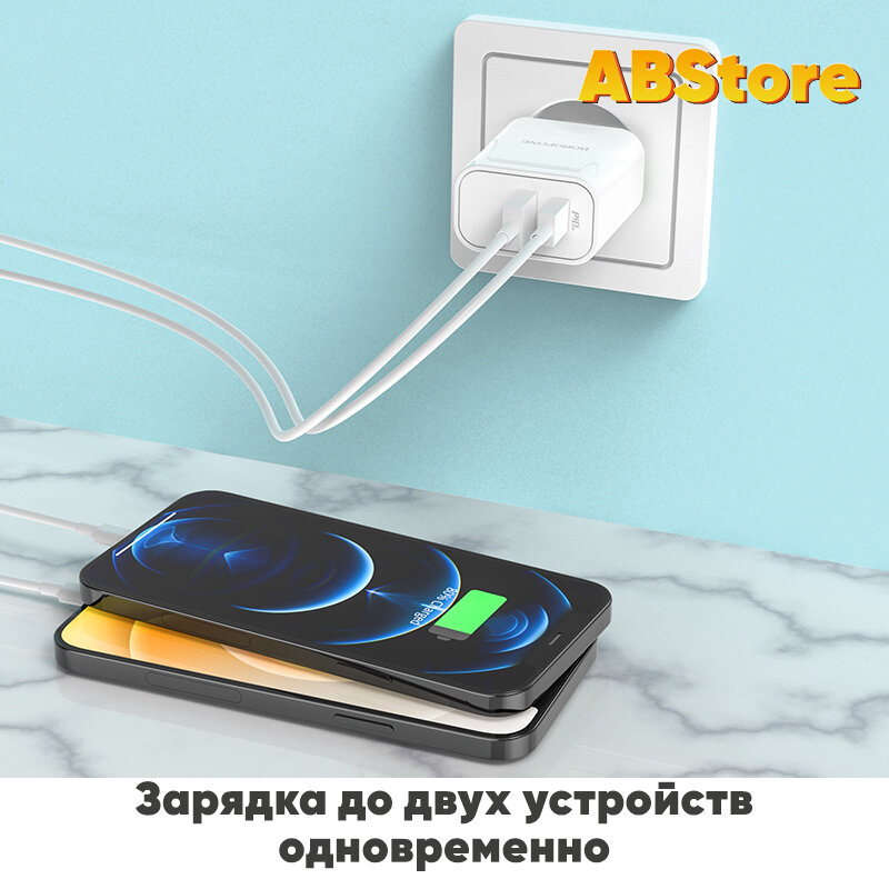 Сетевое зарядное устройство USB QC 3.0 + Type C Power Delivery Borofone BA55A белый интересное: