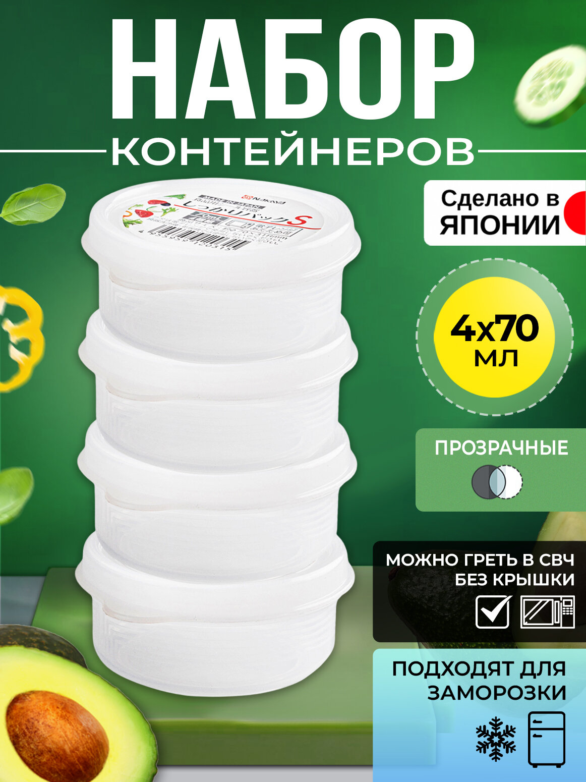 Контейнер для еды герметичный пластиковый с крышкой набор 4 шт., 70 мл (S), Д 7х3,1 см