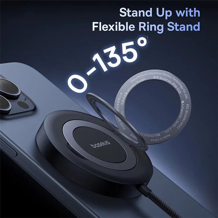 Купить Магнитное беспроводное зарядное устройство Baseus 15 Вт с подставкой, Qi2, черный