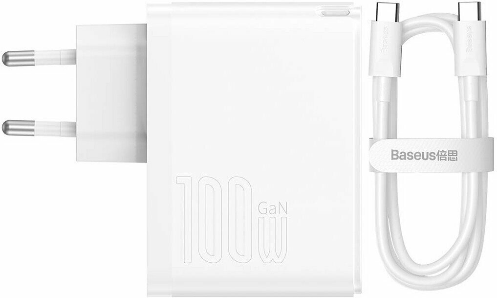 Сетевое зарядное устройство/Быстрая зарядка Baseus GaN5 Pro Fast Charger C+U 100W EU White (Cable Type-C to Type-C 100W(20V/5A) CCGP090202