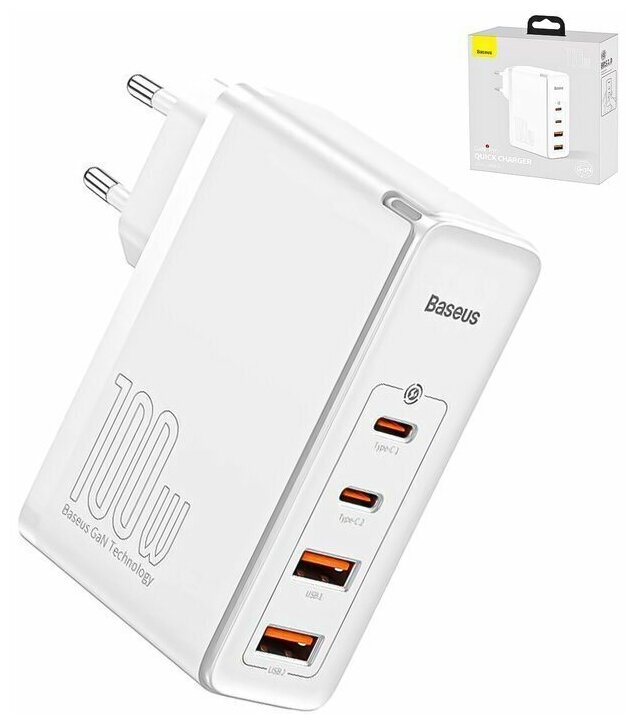 Сетевое зарядное устройство Baseus GaN2 Pro Quick Charger 2C+2U 100W EU (CCGAN2P-L02), белый