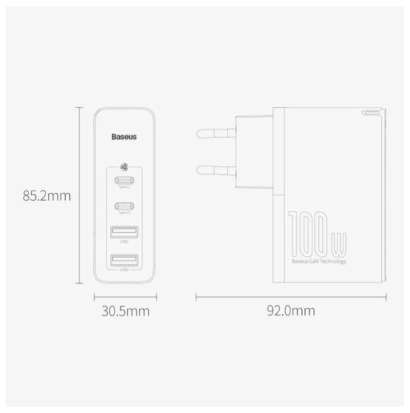 Сетевой адаптер Baseus GaN2 Pro Quick Charger 2C+2U 100W EU (CCGAN2P-L02)