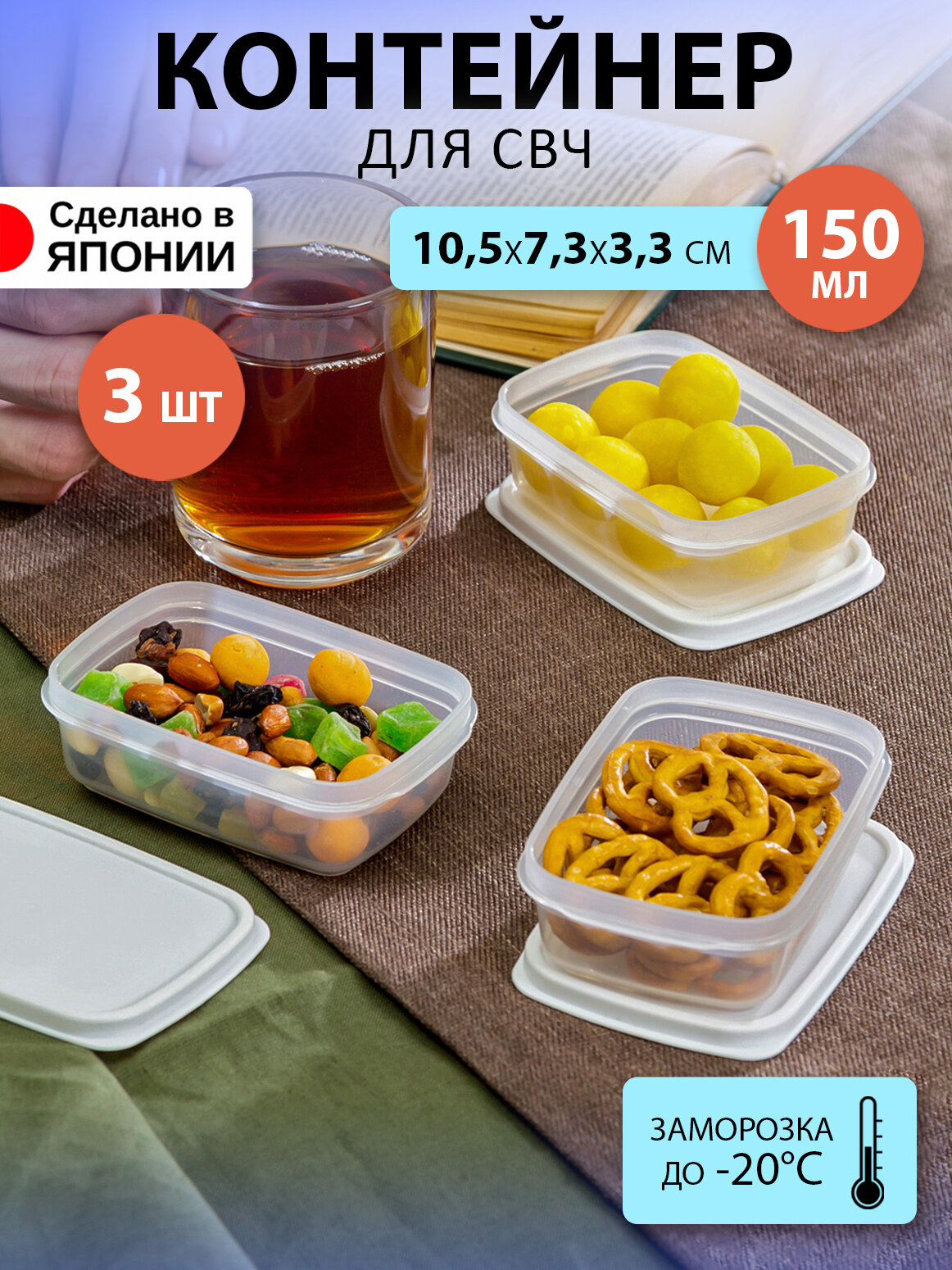 Купить Контейнер для еды пластиковый с крышкой набор 3 шт 150 мл, 10,5х7,3х3,3 см