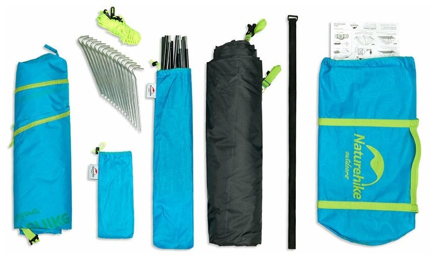 | Подробная комплектация | палатка, 15 колышек, 6 ветровых верёвок, два шеста, сумка для хранения аксессуаров |