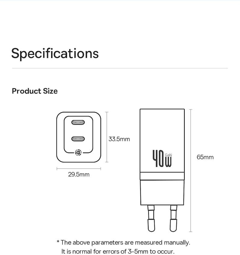 Сетевое зарядное устройство Baseus 40W GaN5 Pro 2xUSB-C, быстрая зарядка (CCGP180101) черный